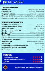 Дата: 0000-00-00 Информация взята: Издание Car&Music Отзывы покупателей про статью "Компонентные АС JBL GTO 6506ce"