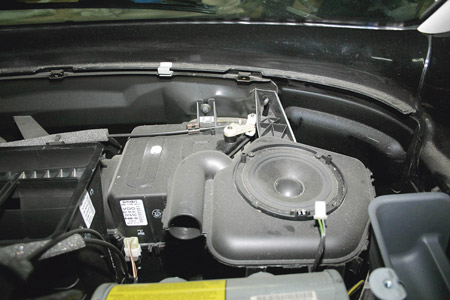 Начнем с акустики. В ней, как говорится вся изюминка. Сверху на торпедо, по домашним традициям, установлены двухполоные системы E.O.S Opera ES130. На подвесе с быстрым ходом, литым диффузородержателем, мощной магнитной системой – мидбасы с диффузором, который имеет влагозащищающую пропитку. Для качественного звука широкого диапазона частот (62 Гц — 25 кГц) есть всё: и пищалка с куполом, изготовленным из шёлка, и кроссовер с плёночными конденсаторами и катушками. Действие мощности 70 Вт и чувствительность 90 дБ малым не покажутся в миниатюрном салоне авто. Со специальным разворотом к водителю расположены динамики. А вот про технологию и конструкцию подиума наш отдельный рассказ. Минуточку терпения.