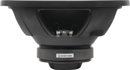 В этой модели, как и рассмотренных выше диффузор выполняется их пропиленового материала, при этом в центре его располагается вогнутый колпачок, диаметр которого составляет 101 мм. Весь корпус имеет хорошую заглушенность, которая практически идеальная. Ширина подвеса соответствует предыдущей модели и составляет 27 мм. Сабвуфер автомобильный имеет гофру, которая не имеет внутренних изломов , а подвес в силу этого получил название конгруэнтного. Учитывая красивый и древний американский обычай, обод корпуса с внешней стороны имеет кольцо, сечение которого составляет С образ. Автомагнитолы содержат магниты не очень крупных габаритов, размеры которых составляет 139 на 25 мм. При этом размер осевого отверстия достаточно мал и составляет 20 мм. Контакты клемм для подключения данного сабвуфера имеют вид своеобразных «лопаточек». При подводе используется первый способ, но при этом отмечается двукратная прошивка всех проводов в конусе, а все провода были плотно зафиксированы.