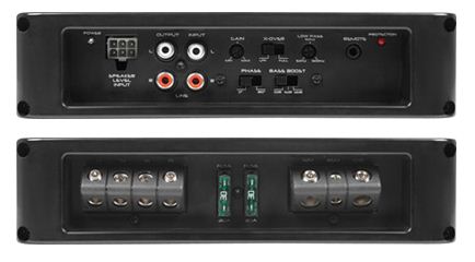 Эти усилители автомобильные отличаются высокой компактностью – если учесть, что его выстраивают по схеме класса А и В. Из этого можно сделать вывод, что никаких рекордных мощностей вообще нет. Каков предохранительный номинал? 60 Ампер. Корпус абсолютно лишен острейших кромок – это выгодно отличается от предшественников. Торец закрыли при помощи пластиковых накладок – при монтаже их нет никакой необходимости демонтировать… Но вот маркировку выходного зажима прочитать на ходу очень и очень сложно.