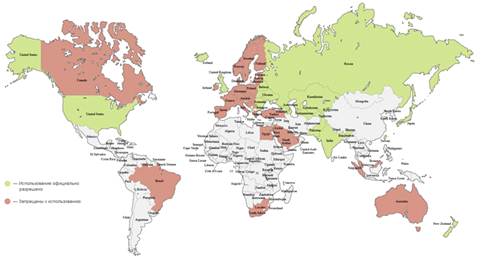 Но, есть содружества, что категорически запретили распространение на их территории таких механизмов: Канаде (кроме штатов Британская Колумбия, Саскачеван, Альберта), Бразилии, Норвегии, Финляндии, Ирландии, Швеции, Бельгии, Швейцарии, Германии, Дании, Австрии, Люксембурге, Голландии, Португалии, Франции, Испании, Италии, Сербии, Греции, Хорватии, Словакии, Боснии, Польше, Венгрии, Чехии, Латвии, Эстонии, Литве, Иордании, Турции, Сингапуре, Египте, Малайзии, Египте, ЮАР, Саудовской Аравии, ОАЭ, Австралии (кроме штата Западная Австралия).