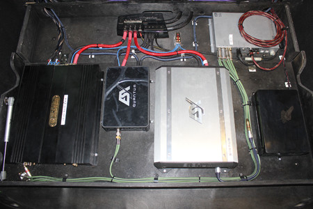 функционирует на мидбас, на сабы – импульсный моноблок ESX SE1200D. Два саба –