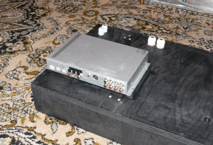Установка и крепление усилка под задней полкой в